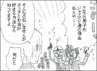 最近はいつもジャスデビが可愛くて仕方ありません。クロス追ってんのに、捕まんなくて、その上借金まで付けられて、弟子に押し付けちゃおうっていう発想が可愛いです。デロは顔可愛いです。デビも好きだぜわはははは。
